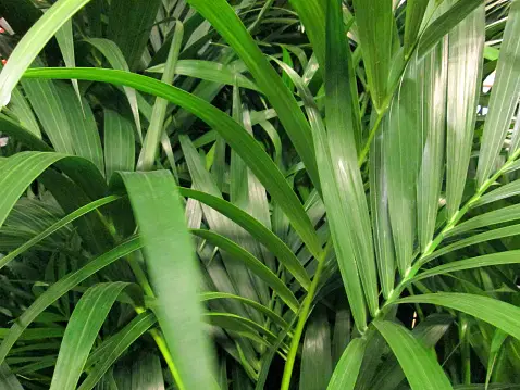 아레카야자는 수십 개의 작은 잎으로 이루어져 있는 우상복엽 식물입니다. 그 곡선과 직선 조화가 아름답기 때문에 관상용으로도 꾸준한 인기를 얻고 있습니다.